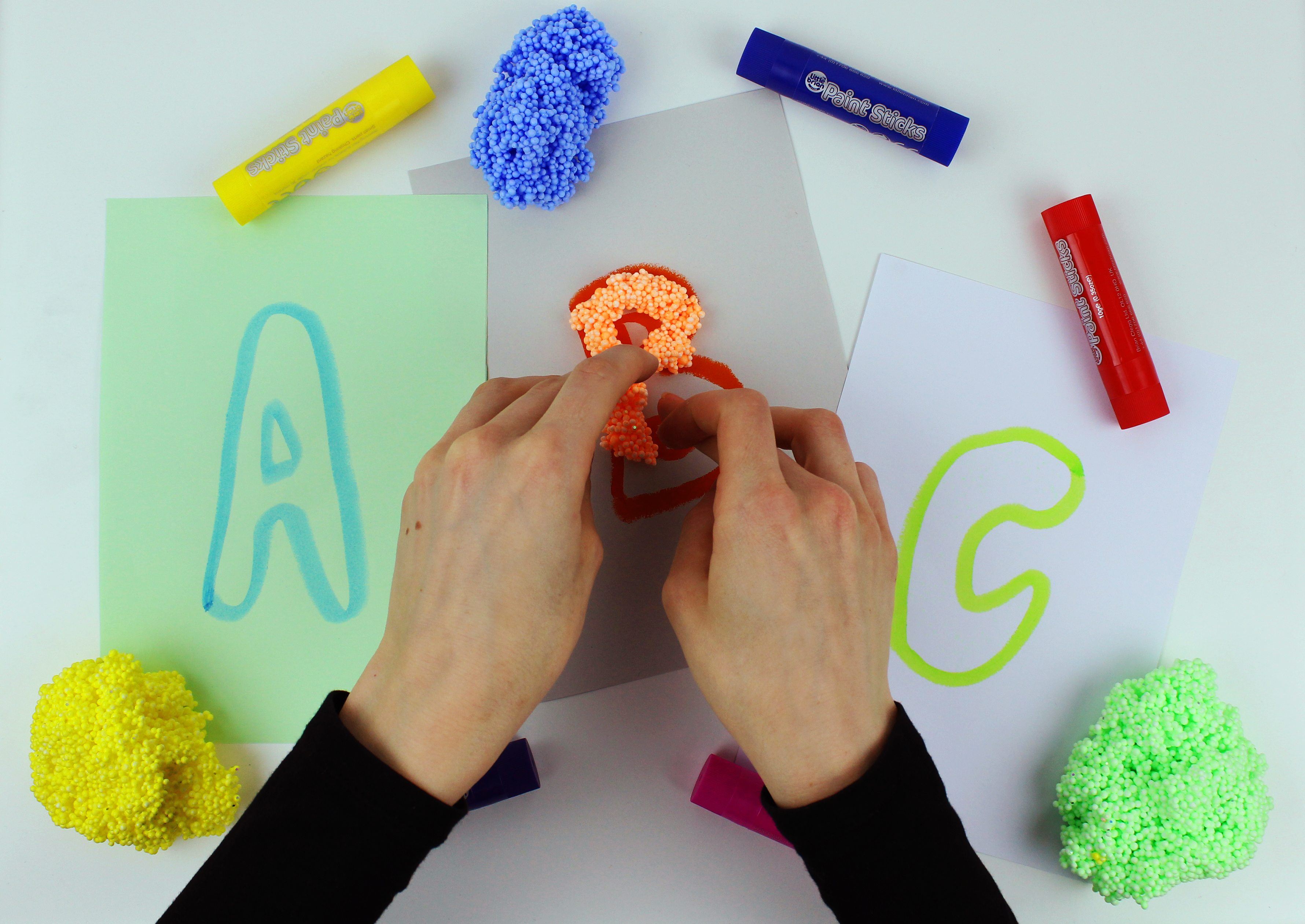Try getting your child to spell out their name with the Playfoam. It’s a good chance to teach them how capital letters go at the beginning of a proper noun!