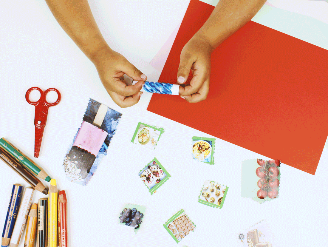 Depending on the age and competency of your little one (and your energy levels!) they can draw the relevant pictures or cut out images of the food items and stick them down. Keep the list manageable, we recommend a maximum of 10 items.