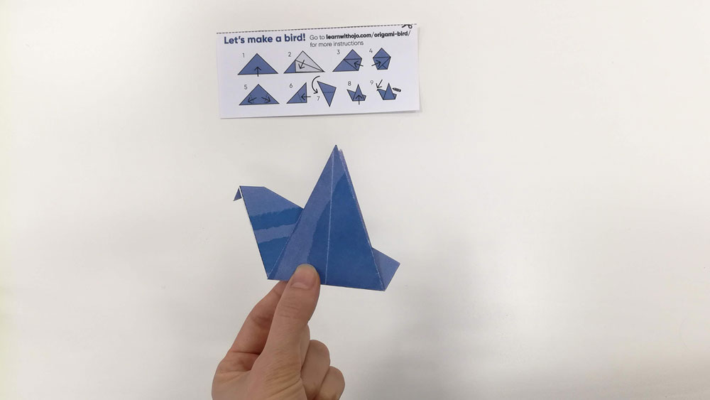 Try making a whole family of birds from different sizes of square paper. What’s the smallest bird you can make?