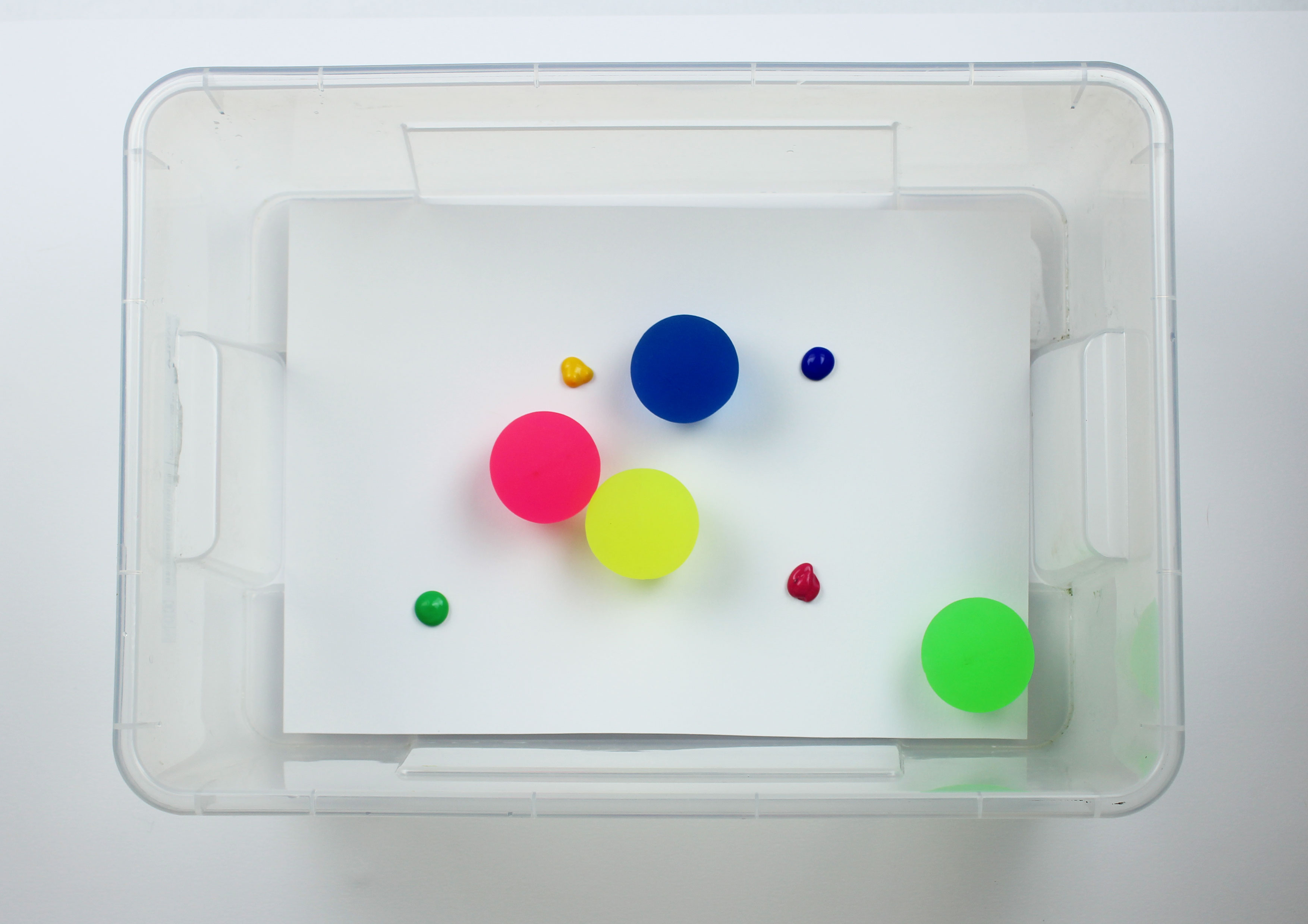 Balls in a variety of sizes. You can even try using toy cars - watch how the wheels make tracks!