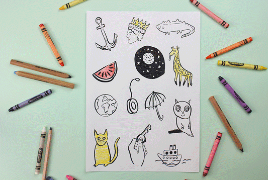 Colour in the pictures and discuss with your child, making sure they know what each picture shows.