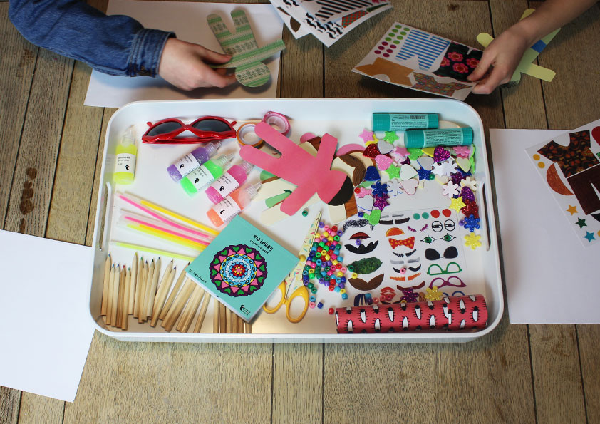 There really is no limit here! Have a look through the toy box and gather bits of Lego, wheels, (the tops from food pouches - think Ella’s Kitchen. These lids make excellent wheels!), buttons, beads, pebbles, leaves - anything that can inspire creativity. Raid the pound shops, and remember not to throw away anything that could come in handy!